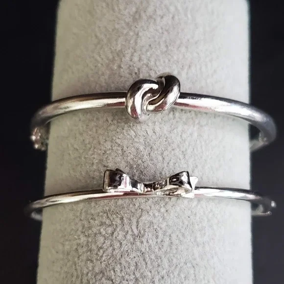 Kate Spade New York Silver Tone Knot and Bow Bangle Bracelet Set 2 Piece
