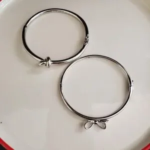 Keywords: Coquette, Balletcore, Minimalist, Dainty, Stackable, Nautical, Preppy, Classic, Silver Tone, Bangle Set, Knot Jewelry, Bow Aesthetic, Feminine, Everyday Wear, Timeless