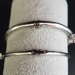 2 Kate Spade silver plated bracelets with strong clasps. 6 1/2 inches around inside and in very good condition.