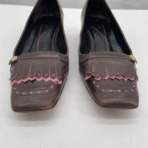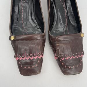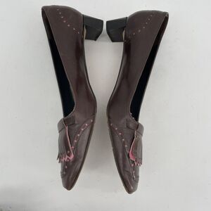 Kate Spade New York Size 6.5 Leather Fringe Tassel Loafers Brown Pink Low Heel