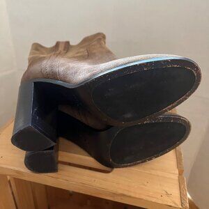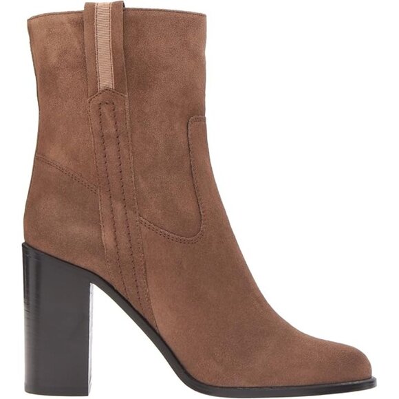 brown ankle boots, suede ankle boots, chunky heel boots, women's ankle boots, brown suede boots, stylish boots, comfortable boots, slip-on boots, suede footwear, casual boots, formal boots, women's footwear, suede shoes, fall shoes, dress shoes, dressy shoes, fall boots