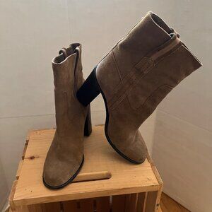 Kate Spade New York Size 9 Tobacco Brown Baise Suede Pull On Heeled Ankle Boots