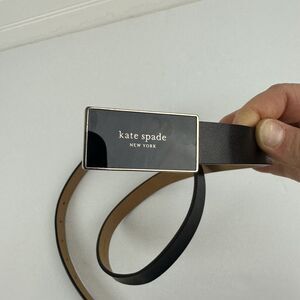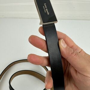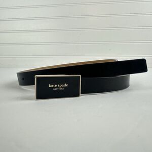 Kate Spade New York Skinny Black Smooth Leather Belt 3/4" Enamel Buckle Size L