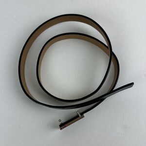 Kate Spade New York Skinny Black Smooth Leather Belt 3/4" Wide Black Enamel Buckle Size L - Excellent used condition