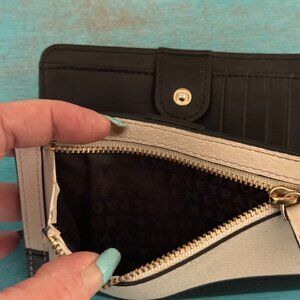 Kate Spade New York Small Bifold Wallet Leather Snap Closure Black & Cream