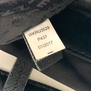 Kate Spade wipeable nylon crossbody handbag in black with gold hardware. Features include a structured shape and matte black finish, medium size, perfect for travel, work, or everyday use. The bag features a dog clip closure, double handles, and a detachable strap for added convenience. The interior is lined with black jacquard logo fabric and includes inner pockets and dividers for easy organization. The bag also boasts gold-plated hardware and Kate Spade logo accents. The strap can be adjusted to approximately 19-24 inches, Good preowned condition, some marks on the exterior and interior lining and wear to the handles and strap as shown. See photos for more details. Happy to answer any questions!
