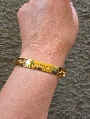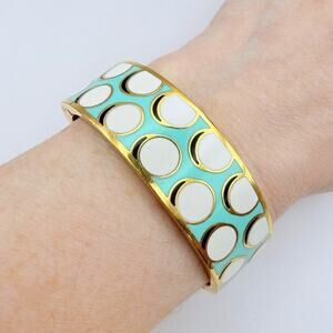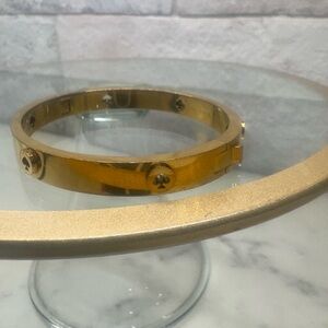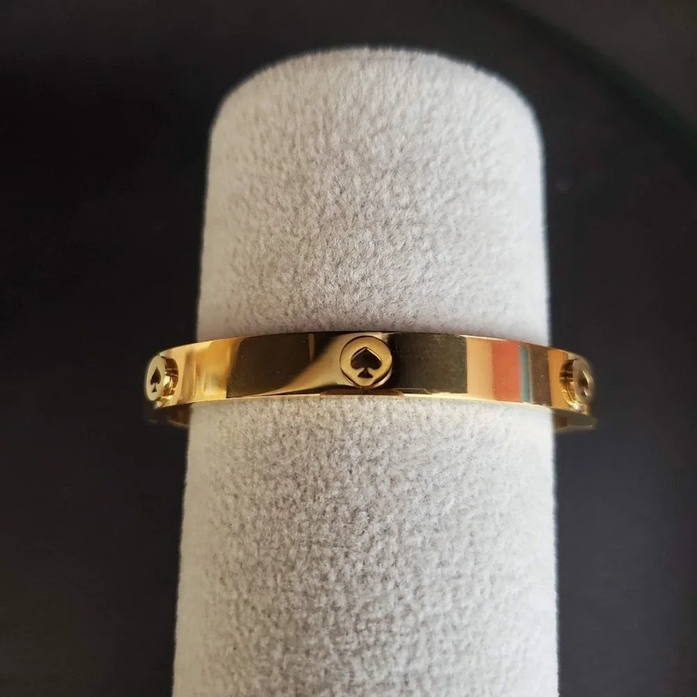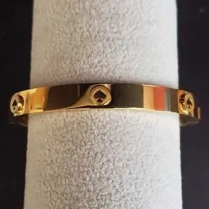 Keywords: Designer, Preppy, Minimalist, Gold Tone, Spade Logo, Hinged Bangle, Stackable, Everyday Wear, Classic, Chic, Jewelry, Gift, Feminine, Polished, Contemporary