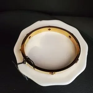 Kate Spade New York Spot the Spade Cut Out Hinged Bangle Gold Plate NWT