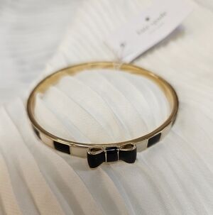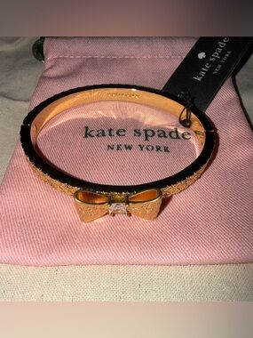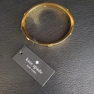 Kate Spade Spot the Spade hinged bangle is gold plated with cut-out spades. 6 3/4 inches around inside with a strong locking clasp. New with tags.