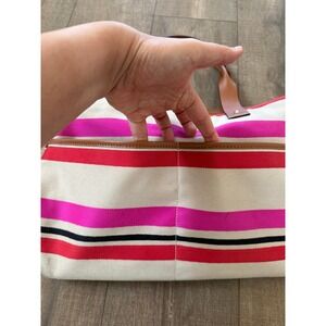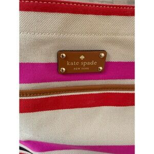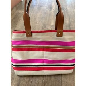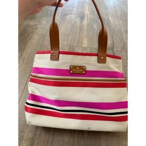 Kate Spade New York Striped Canvas Tote Bag Pink Red Brown Purse