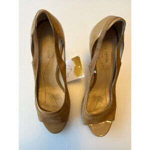 Kate Spade New York Tan Suede Peep Toe Pumps Heels, Size 9.5 (US)