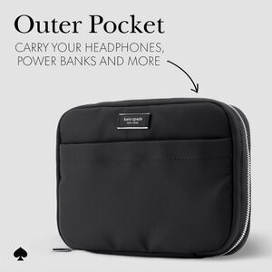Ready to jet off? Don’t forget to take the kate spade new york Travel Organizer with you. This lightly padded organizer offers a dedicated space for all your tech essentials and protects them from drops and bumps. Thoughtful mesh interior pockets keep cords and accessories untangled, while the outer zipper pocket ensures easy access to must-haves like headphones and phone chargers.