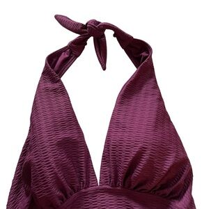 Kate Spade New York Textured Belted Halter Swimsuit Medium Deep Plunge Purple