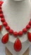 The necklace consists of red beads and several larger, teardrop-shaped red stones, with small cubic zirconia crystal accents.