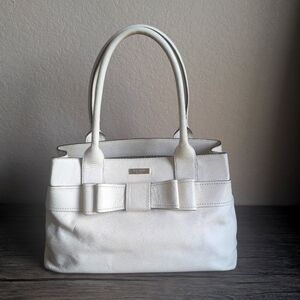 Kate Spade New York Villabella Avenue Elena Cream Leather Zip Close Purse Handbag Bow Tote