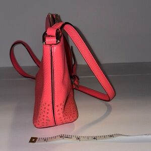Vibrant coral crossbody with textured detail. Perfect for adding flair to any outfit.