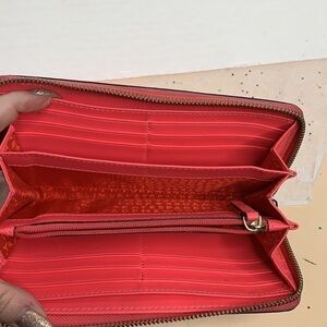 A beautiful boar skin leather wallet with many great features. There is a back slip pocket, zip closure to keep things secure. Fully lined in a soft sateen with 14-karat gold plated hardware. 12 credit card slots, a center zip pocket, 2 full length bill slip pockets, 2 large expandable pockets, Measures: 8" (W) X 4"(H) X 2"(D)