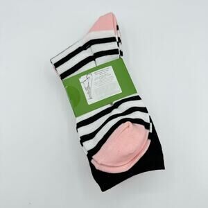 Kate Spade New York White Black Pink Polka Dot Striped Crew Socks Women’s OS