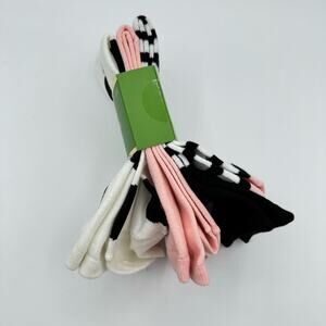 Kate Spade New York White Black Pink Polka Dot Striped Crew Socks