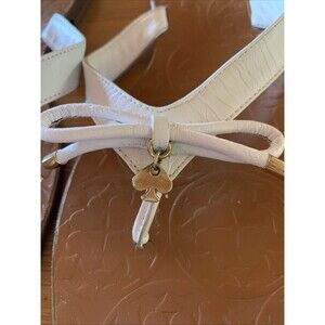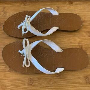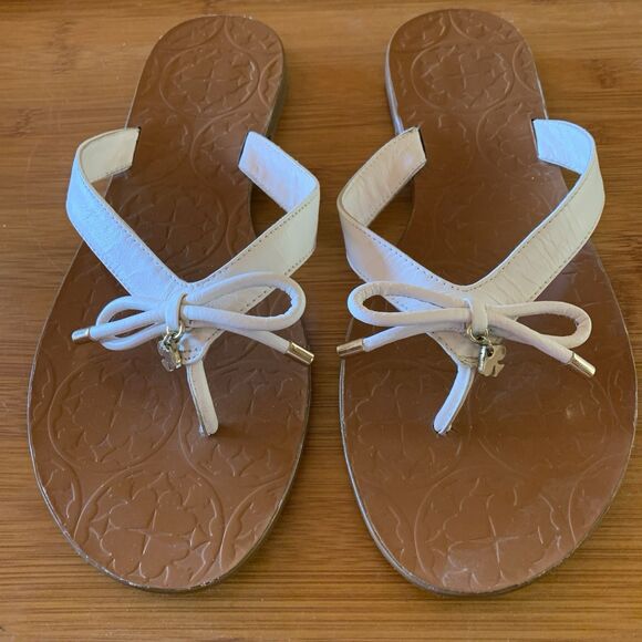 Kate Spade New York White Leather Thongs Sandals Sz 8.5 M Bow Charm Luxury