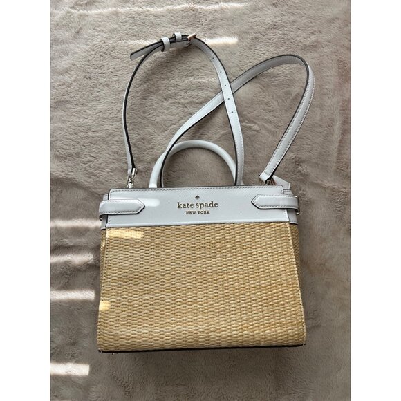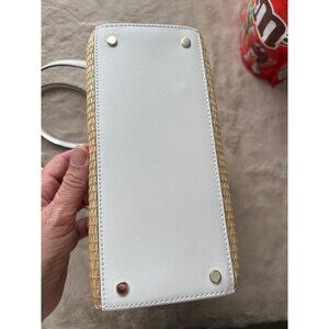 Kate Spade New York Wicker & White Leather Small Satchel Crossbody Bag