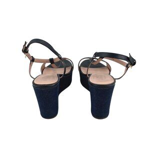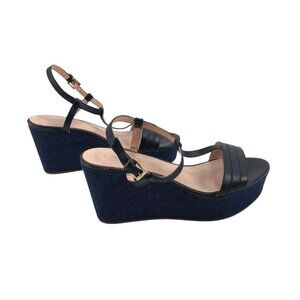 Kate Spade New York Womens 8.5M Platform Wedge Sandals Leather Denim Chic