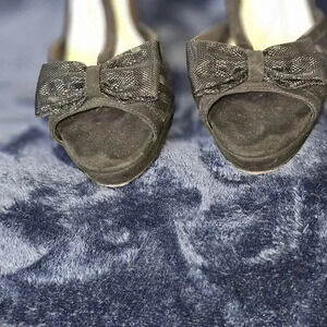 Kate Spade New York Women's Black Suede /Mesh Bow Peep Toe Heels Size 6.5