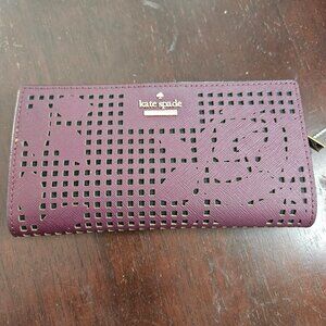 Kate Spade Cameron Street Perforated Rose Lacey Wallet in Deep Plum