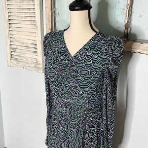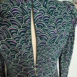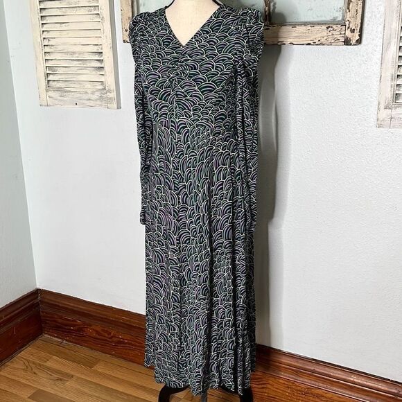 Kate Spade New York Womens Maxi Dress Puff Shoulder Long Sleeve Abstract Purple Green Size 0