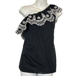 Kate Spade New York Womens Navy Ruffle Embroidered Eyelet One Shoulder Top sz S