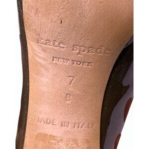 These Kate Spade high heels elevate your professional wardrobe, offering a sleek patent leather finish and a timeless deep gray hue for versatile styling. Kate Spade New York Womens Patent Leather Deep Gray / Green Stiletto Made in Italy Size 7B. So classy.