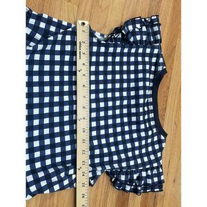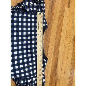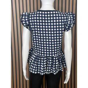 Kate Spade New York Women's Top T-Shirt Peplum Navy Gingham Check Ruffle Sleeve