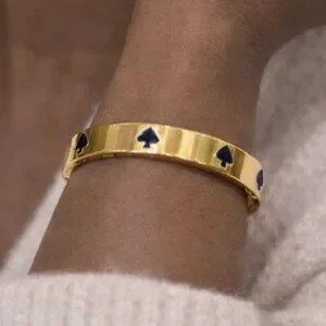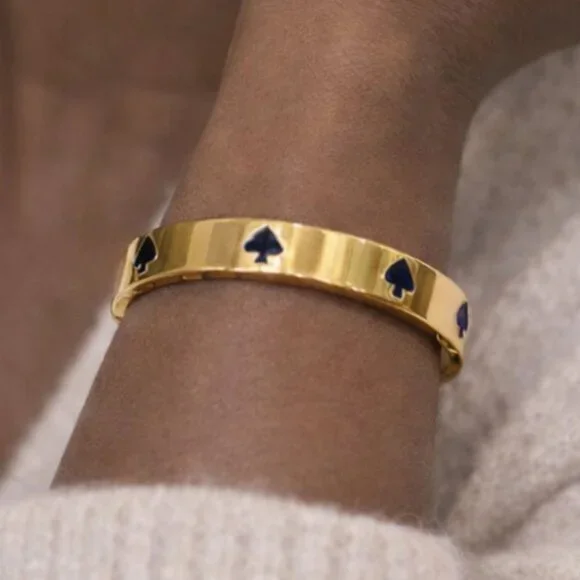 Design: A gold-plated bangle decorated with multiple enamel spade icons.