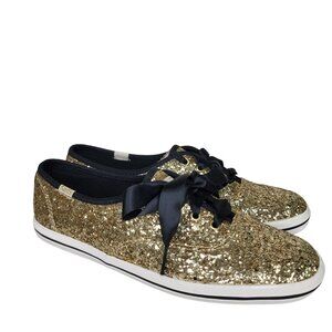 Kate Spade New York keds NIB Women's Gold Glitter Sneakers Sz 6.5M ribbon Laces