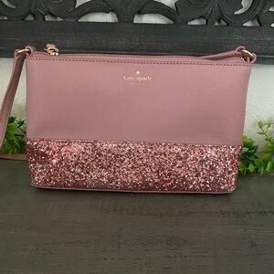 Kate Spade New York pink glitter crossbody bag with matching card holder