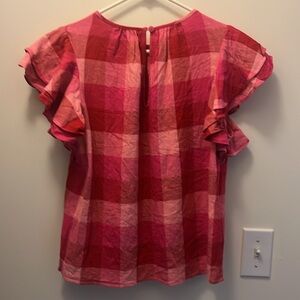 Kate Spade New York pink plaid Picnic woven flutter Sleeve Top size medium
