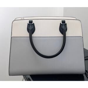 Elegant and timeless, this Kate Spade New York satchel features sleek color-blocked Saffiano leather, dual handles, and silver hardware. A chic everyday tote blending modern sophistication with classic charm — perfect for work or city style.