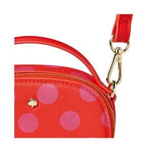 Add a pop of color to your outfit with this Polka Dot Mini Crossbody Bag from kate spade new york x Target. The oval mini bag features a pink and red polka dot pattern, zip closure, removable crossbody strap, and an attached carrying handle. Perfect for keeping your essentials handy with style.