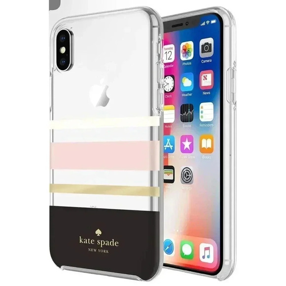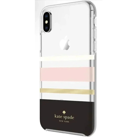 Protect your Apple iPhone XS in style with this sleek and stylish Kate Spade New York phone case in black and gold. The lightweight and fitted case/skin is designed to perfectly fit your device and keep it safe from scratches and minor impacts. With its unique design and high-quality materials, this phone case is the perfect accessory for any fashion-forward iPhone user who wants to keep their device looking great while on the go.