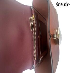This gorgeous Kate Spade Nicola convertible shoulder bag is a beautiful metallic silver and copper leopard print leather with spade heart twist lock. Maroon leather body & zipper, two slip card pockets inside plus slip pocket on back. Gold chain strap can be used as shoulder bag or crossbody. Beautiful italian leather details and spade logo. Great evening bag or just a stylish casual look. 6 1/2" W x 5"H x 3" D. 11 1/2" strap drop 21 1/2" crossbody. This bag is great quality and gorgeous, perfect for a night out!
