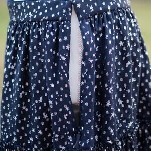 This tiered ruffle skirt comes in a gorgeous, starry print for a new take on classic polka dots, inspired by nature's very own fireworks. woven with metallic threads, the fabric glints under any lighting for an eye-catching 3D effect.