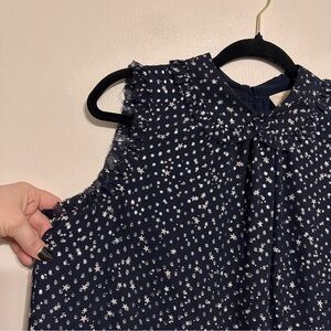 Kate Spade Night Sky Silk Blend Sleeveless Top Star Navy Silver Medium