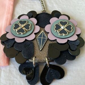 Kate Spade: Nightcap “Baby Zibbi” Owl Leather Keychain/Charm- Silver Tone- 7”