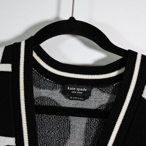 Kate Spade Noel Logo Print Pattern Wool Stretch Knit Cardigan Sweater Black M