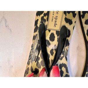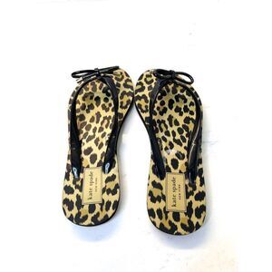 Kate Spade Nova Leopard Animal Print Flip Flop Green Black Sz 5 NWOT Designer. Rubber non-slip bottom. Super cute bow decoration. Item is new has defects with print in footbed - design irregular. No known rips, tears, holes, stains other than mentioned. Retails $98