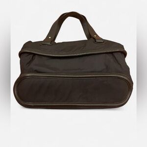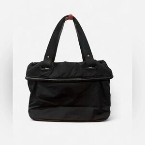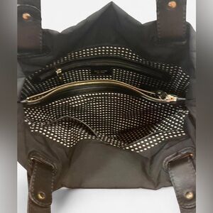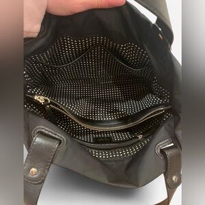 Kate Spade black nylon tote bag with leather handles. Beautiful and practical. In perfect condition - no rips, stains, etc. Magnetic snap closure at the top and inside has a small zipper pocket. Great day bag or work bag! #katespade #handbag #tote #summer #spring