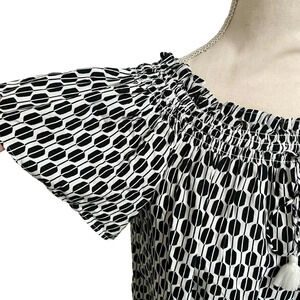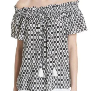Kate Spade Off Shoulder Tassel Top Black White Abstract Print XXS Rayon