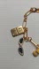 Stylish gold bracelet featuring playful charms in green, black, and white.