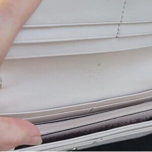 Authentic Kate Spade off-white leather wrist wallet — a chic, roomy wristlet perfect for everyday essentials. Crafted from 100% genuine leather in a soft cream/beige tone, this vintage large wallet offers style and function with a detachable wrist strap and organized interior.