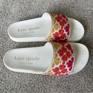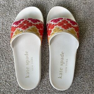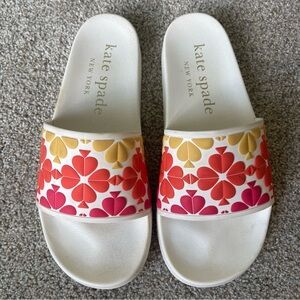 Kate Spade Olympia Slides Sandals White/Multi 37.5 US 7/8 Slip On Pool Beach